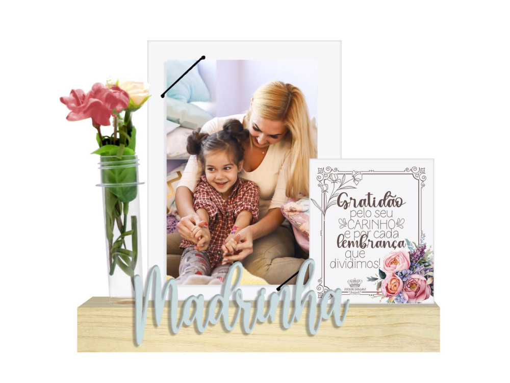 PORTA-RETRATO COM ELÁSTICO, PLACA E TUBETE MADRINHA...BORBOLETA 21X23X4,5