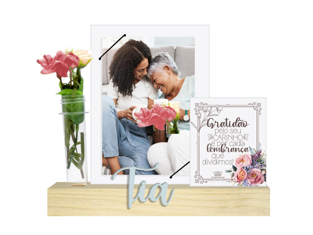 PORTA-RETRATO COM ELÁSTICO, PLACA E TUBETE TIA...BORBOLETA 21X23X4,5