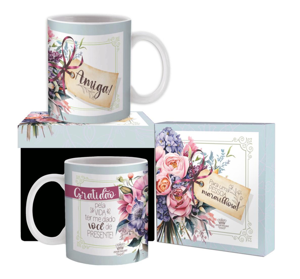 Material: Cerâmica. Contém: 1 Caneca de 300 ml. Cuidados: Lavar com água e sabão neutro. Não utilizar produtos químicos ou abrasivos. Impactos podem danificar o produto. Pode ir ao micro-ondas e à lava-louças.
