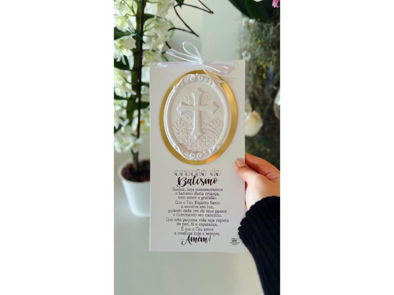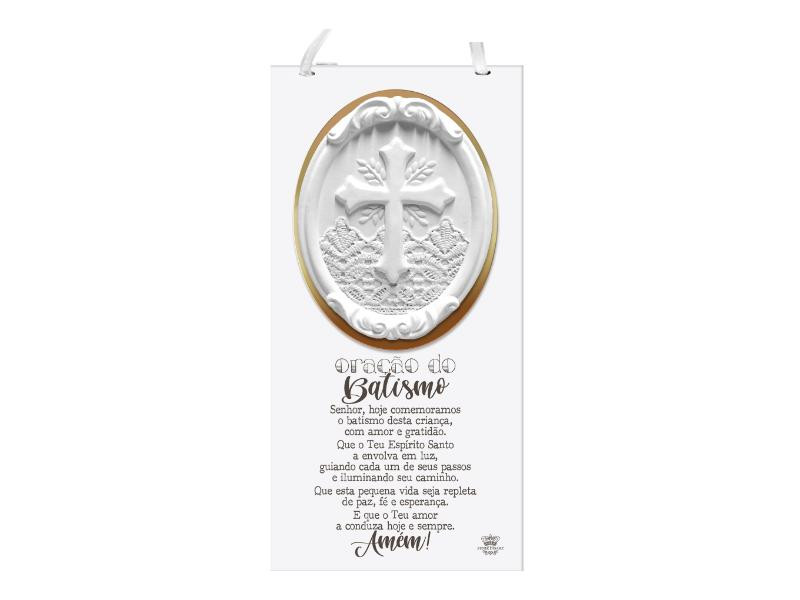 QUADRO COM APLIQUE ORAÇÃO DO BATISMO 28X14