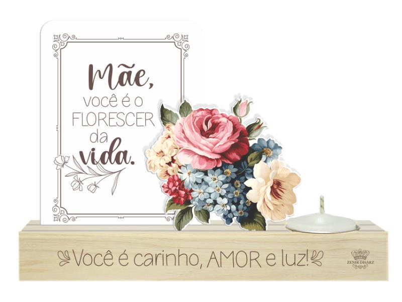 PLACA DE MESA COM VELA E APLIQUE, MÃE VOCÊ É LUZ...11,5X5X5