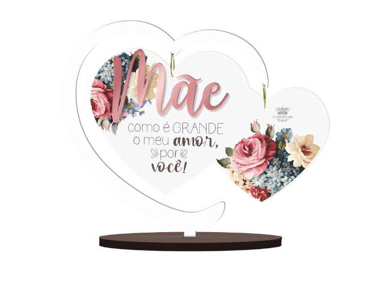 ENFEITE DE MESA COM CORAÇÃO EM ACRILICO E APLIQUE MÃE...16X18X4,5
