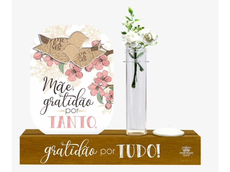 ENFEITE DE MESA COM APLIQUE MÃE É TEMPO...15X16X4,5