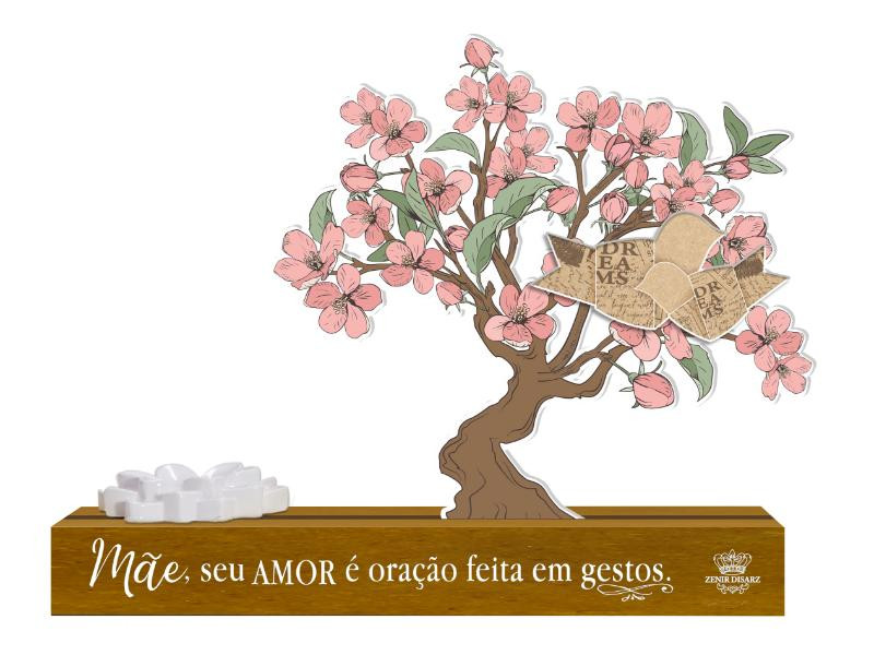 ENFEITE DE MESA COM APLIQUE E PORTA INCENSO MÃE SEU AMOR É ORAÇÃO...CEREJEIRA 15X20X4,5