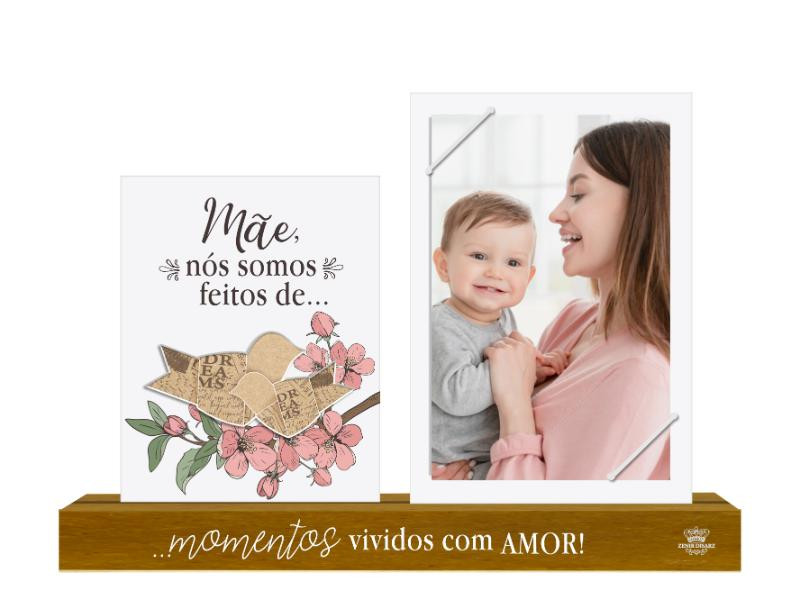 PORTA-RETRATO COM ELÁSTICO E POTE COM MENSAGEM MÃE...PÁSSAROS 20X25X7,5