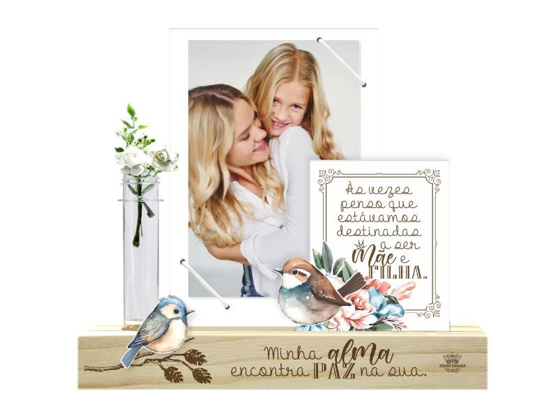 PORTA-RETRATO COM ELÁSTICO, PLACA E TUBETE MÃE E FILHA...PÁSSAROS 21X23X4,5