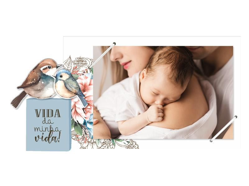 PORTA-RETRATO COM ELÁSTICO E CUBO VIDA DA MINHA VIDA...MÃE PÁSSAROS 12X23X3