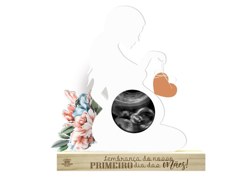 ENFEITE DE MESA COM PORTA RETRATO GESTANTE NEUTRO...BRISA 22X20X4,5