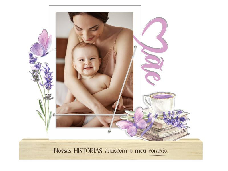 PORTA-RETRATO ELÁSTICO COM APLIQUE MÃE NOSSAS HISTÓRIAS...19X24X4,5
