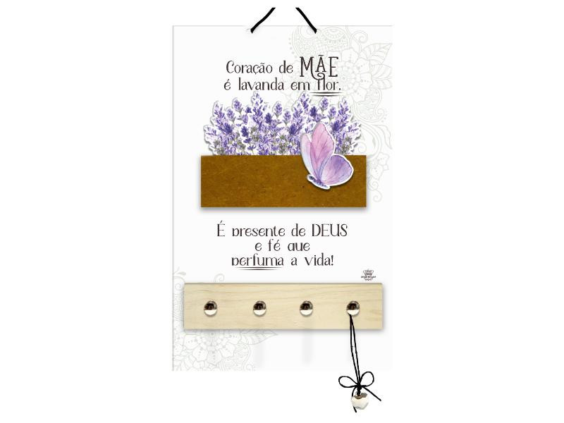 PORTA-CHAVE COM FLOREIRA CORAÇÃO DE MÃE É LAVANDA EM FLOR 28X18