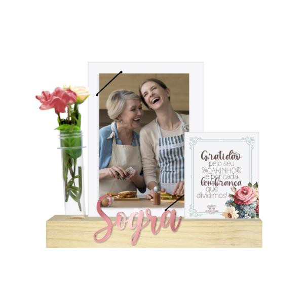 PORTA-RETRATO COM ELÁSTICO, PLACA E TUBETE SOGRA...ROSÊ 21X23X4,5