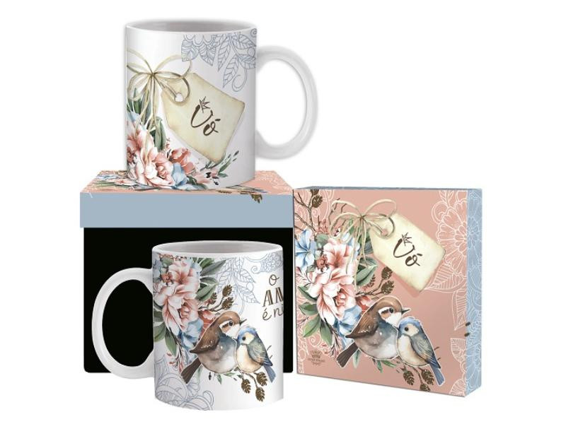 CANECA CERÂMICA AVÓ PÁSSAROS