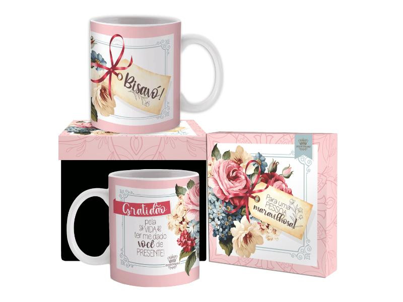 Material: Cerâmica. Contém: 1 Caneca de 300 ml. Cuidados: Lavar com água e sabão neutro. Não utilizar produtos químicos ou abrasivos. Impactos podem danificar o produto. Pode ir ao micro-ondas e à lava-louças.