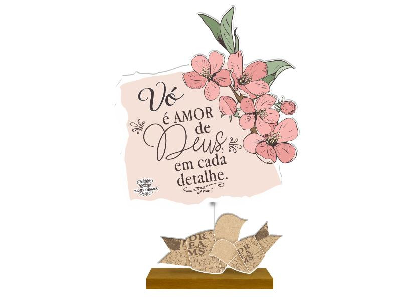 ENFEITE DE MESA COM VELA E APLIQUE VÓ, VOCÊ É AMOR...BORBOLETA 14X20X4,5